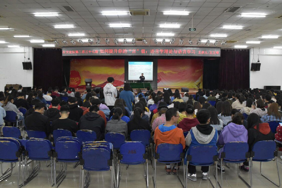3月26日晚,由校團委主辦、外國語學院團委學生會承辦的石大青年論壇第237期“如何提升你的‘言’值:語言學理論與語言學習”在鄠邑校區(qū)騰輝大學生活動中心舉行,本期論壇邀請了我院青年教師王文峰博士擔任主講,我院全體學生以及學校其他院系學生參加了此次講座。