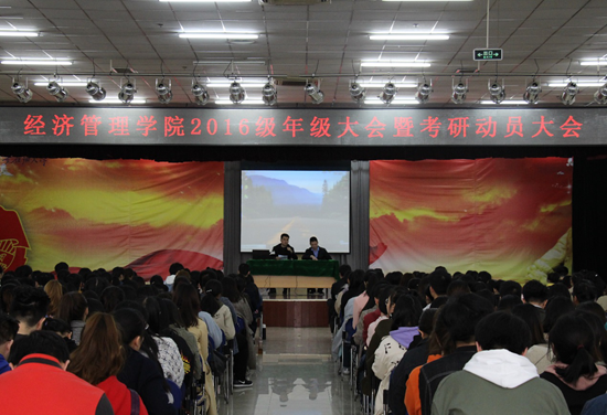 3月13日下午,經(jīng)濟管理學院2016級年級大會暨考研動員大會在鄠邑校區(qū)騰輝大學生活動中心召開。考研輔導專家王思陽老師、李茸老師出席,輔導員武威老師、孫劍秋老師與2016級600余名學生參加。