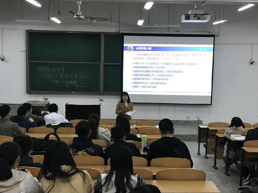 3月11日晚19:00,國(guó)際交流與合作處在鄠邑校區(qū)B114教室舉辦留學(xué)項(xiàng)目宣講會(huì),王文化副處長(zhǎng)主講。