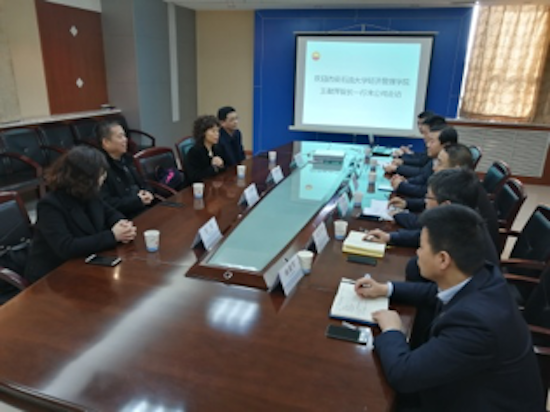 王君萍院長還就經(jīng)濟管理學院的學科建設、專業(yè)發(fā)展、人才培養(yǎng)、科學研究、社會服務等工作向各位領導作了詳細匯報,并誠摯邀請各位領導能夠蒞臨西安石油大學,參加由經(jīng)濟管理學院承辦的第三屆“能源杯”全國大學生財會技能挑戰(zhàn)賽,與能源相關企業(yè)共聚一堂、共謀發(fā)展。各位企業(yè)領導欣然應允,并祝西安石油大學經(jīng)濟管理學院各項事業(yè)蓬勃發(fā)展!