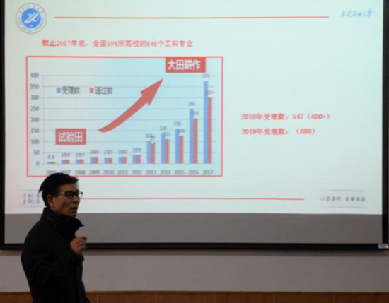 專(zhuān)業(yè)認(rèn)證(評(píng)估),在國(guó)家層面上,是未來(lái)評(píng)價(jià)專(zhuān)業(yè)質(zhì)量的重要標(biāo)準(zhǔn),是高等教育內(nèi)涵發(fā)展的重要內(nèi)容;省級(jí)層面上,推動(dòng)專(zhuān)業(yè)認(rèn)證(評(píng)估)是深化高校供給側(cè)結(jié)構(gòu)性改革的重要抓手,是“四個(gè)一流”建設(shè)的重要內(nèi)容;學(xué)校層面上,開(kāi)展專(zhuān)業(yè)認(rèn)證(評(píng)估)對(duì)于提高學(xué)校核心競(jìng)爭(zhēng)力,培養(yǎng)一流人才,建設(shè)一流本科,爭(zhēng)創(chuàng)一流專(zhuān)業(yè)具有重要的現(xiàn)實(shí)意義。為了進(jìn)一步了解和掌握專(zhuān)業(yè)認(rèn)證(評(píng)估)的相關(guān)理念、方法,經(jīng)濟(jì)管理學(xué)院特意邀請(qǐng)校高教評(píng)估中心副主任時(shí)保宏老師,進(jìn)行了精彩講座。推進(jìn)會(huì)由教學(xué)副院長(zhǎng)吳勛主持,各專(zhuān)業(yè)負(fù)責(zé)人、系主任、教學(xué)辦工作人員參加。