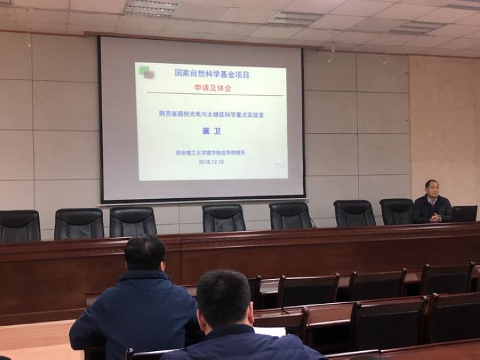 2018年12月18日。理學(xué)院邀請西安理工大學(xué)施衛(wèi)教授在雁塔校區(qū)會議中心第三會議室進(jìn)行了關(guān)于國家自然科學(xué)基金申請及體會的報告會。傅海威院長主持會議,理學(xué)院博士及副高以上教師50余人參加了報告會。