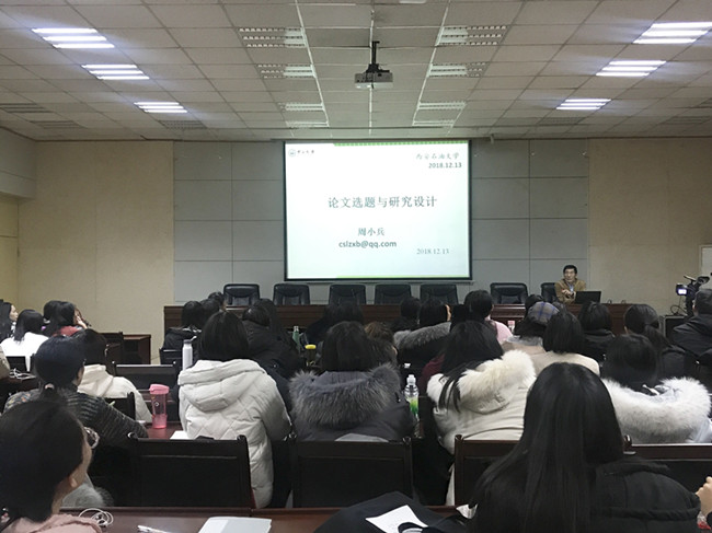 12月13日下午四點,人文學院在西階第三會議室舉辦了以“漢語國際教育專業(yè)的論文選題”為主題的人文學術沙龍。本次講座邀請到中山大學周小兵教授,部分教師及2018級漢語國際教育專業(yè)全體學生參加,報告前由黃慶豐副院長為周小兵教授頒發(fā)了人文學院客座教授聘書。
