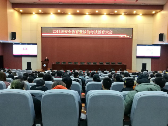 12月12日晚,化學化工學院在圖書館弘石報告廳召開2017級安全教育暨誠信考試教育大會。2017級輔導員楊夢琳老師主持大會。2017級全體同學參加會議。