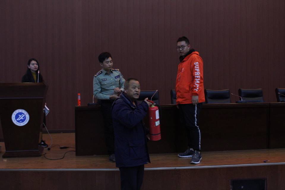 講座一開始,高教官從不久前上海高校發(fā)生的火災講起,由淺入深地進行了消防安全知識的講解,內容涉及了火災發(fā)生的原因、怎樣預防火災、火災逃生的基本知識、滅火器的正確使用方法等。高教官不僅從理論上向大家講授了關于消防的各種安全防范知識,還列舉了大量的實際生活中的案例,教訓深刻,發(fā)人深省。高教官現場指導了同學們如何操作干粉滅火器。