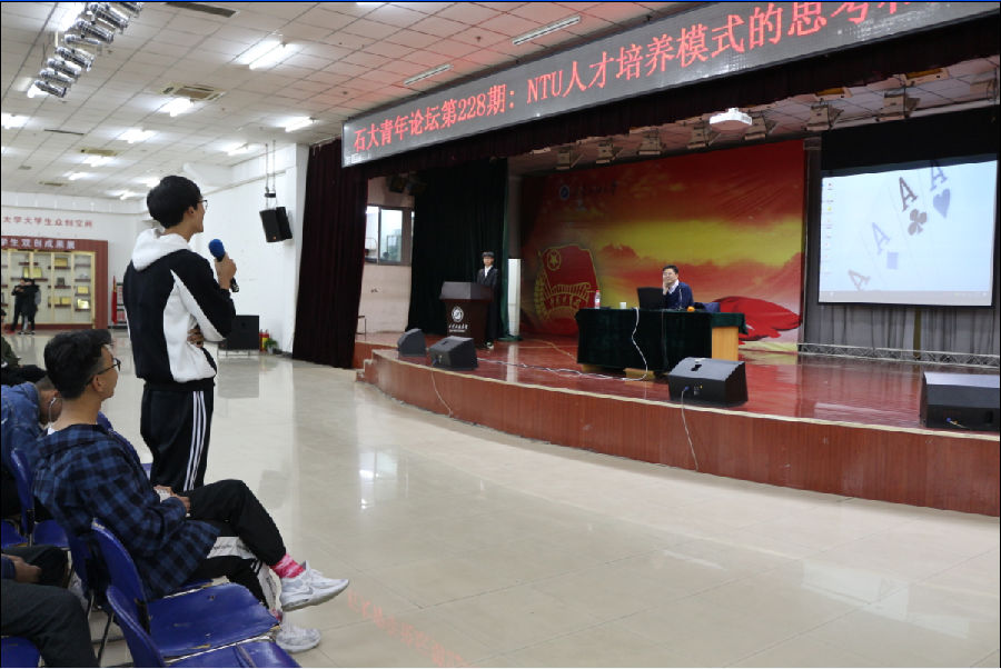 11月6日晚7點,由校團委主辦,電子工程學院承辦的第228期石大青年論壇:NTU人才培養(yǎng)模式的思考和啟發(fā)——兼談新英兩國訪游見聞,在騰輝大學生活動中心順利舉辦。此次論壇主講人為西安石油大學黨政辦公室副主任、鄠邑校區(qū)管理辦公室副主任王亮老師。