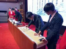 比賽現(xiàn)場(chǎng),研究生社團(tuán)“星原詩(shī)社”及“翰墨書社”也帶了精彩節(jié)目進(jìn)行分享。星原詩(shī)社副社長(zhǎng)康凱等演繹了詩(shī)朗誦“厲害了我的國(guó)”,激昂振奮;翰墨書社李睿哲等現(xiàn)場(chǎng)揮毫潑墨,伴著朗誦,一幅幅書法作品讓我們領(lǐng)略了“聽風(fēng)落筆書畫卷,聞歌踏行彩墨宜,潤(rùn)澤拂柳漾碧波,書會(huì)揮毫展藝活”的精妙。