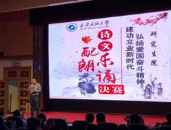 此次朗誦比賽由研究生院黨委主辦,研究生院團(tuán)委、研究生會(huì)協(xié)辦,以弘揚(yáng)愛(ài)國(guó)奮斗精神、弘揚(yáng)社會(huì)主義核心價(jià)值觀、謳歌改革開放四十年偉大成就為主題,是貫徹落實(shí)學(xué)校黨委“弘揚(yáng)愛(ài)國(guó)奮斗精神 建功立業(yè)新時(shí)代”的系列活動(dòng)之一,為進(jìn)一步增強(qiáng)研究生愛(ài)國(guó)熱情,激發(fā)研究生刻苦學(xué)習(xí)、投身建設(shè)的愛(ài)國(guó)情懷,為研究生院進(jìn)一步加強(qiáng)書香校園建設(shè)工作、進(jìn)一步緊密圍繞學(xué)校中心工作、助力學(xué)校事業(yè)發(fā)展奠定良好基礎(chǔ)。