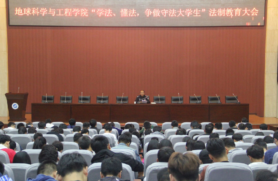 2018年10月29日晚7點,地球科學與工程學院“學法,懂法,爭做守法大學生”法制教育大會在鄠邑校區(qū)弘石學術報告廳召開,大會由學院黨委副書記李慶本主持,鄠邑區(qū)公安分局灃京路派出所王春峰所長主講,校黨委保衛(wèi)部張永華老師、輔導員張陽老師和各年級同學參加了大會。
