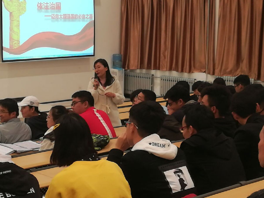 首先,張老師通過講述了一些違法違紀(jì)反面案例,引出依法治國這一概念。緊接張老師從依法治國目標(biāo)的提出和確立、全面推進(jìn)依法治國、堅(jiān)持走中國特色社會主義法治道路、加強(qiáng)憲法實(shí)施,落實(shí)依憲治國等四個(gè)方面進(jìn)行了講解。張老師希望學(xué)生黨員以及入黨積極分子通過學(xué)習(xí)法律知識、掌握法律方法、參與法律實(shí)踐、養(yǎng)成守法習(xí)慣等途徑培養(yǎng)自己的法治思維,做知法、懂法、守法的合格大學(xué)生,發(fā)揮應(yīng)有的先鋒模范作用。