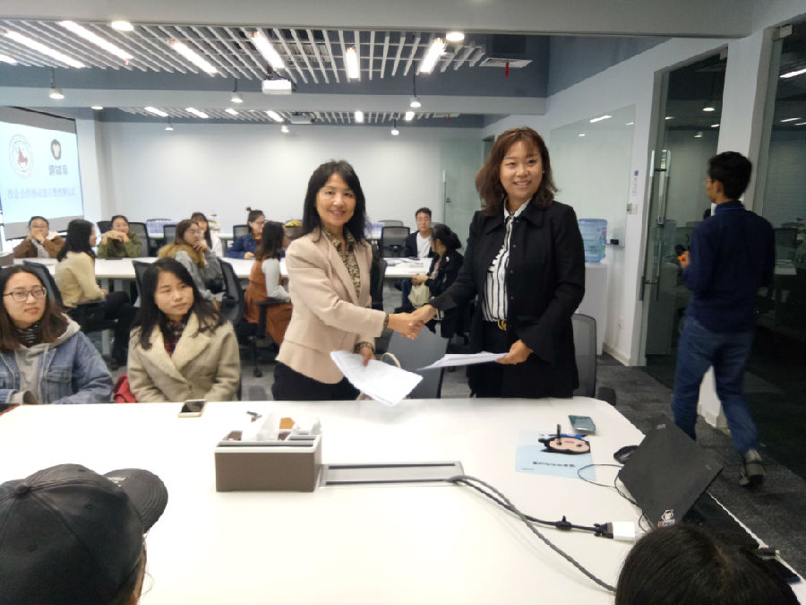 院黨委書記廖敏在總結(jié)發(fā)言中說:這次簽約儀式是外國語學(xué)院首次以學(xué)生為主,實施 “走出去”戰(zhàn)略的一次有益的新嘗試。只有以學(xué)生為主,讓更多的學(xué)生積極主動 “走出去”,參觀企業(yè),了解企業(yè)文化與背景,才能讓他們對自我的職業(yè)規(guī)劃有明確的認(rèn)知、對就業(yè)的概念有一個直觀的了解。她代表學(xué)院感謝猿輔導(dǎo)(西安)為此次簽字儀式做的精心安排,希望雙方進一步加強合作,充分整合優(yōu)勢資源攜手合作,助力大學(xué)生成長,實現(xiàn)共贏。