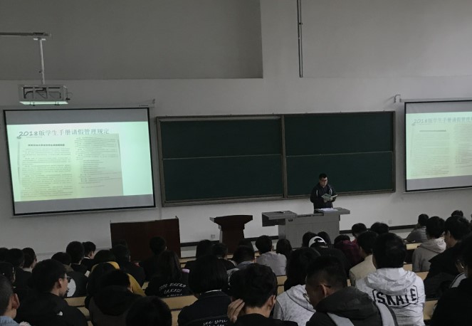 會(huì)上,邱老師首先對學(xué)生進(jìn)行了安全意識教育,帶領(lǐng)學(xué)生們共同學(xué)習(xí)了《西安石油大學(xué)本科學(xué)生請銷假制度》,明確了日常穩(wěn)定安全管理相關(guān)制度要求的重要性,要求同學(xué)們嚴(yán)格遵守節(jié)假日去向統(tǒng)計(jì)、周末晚點(diǎn)名、上課考勤等制度。