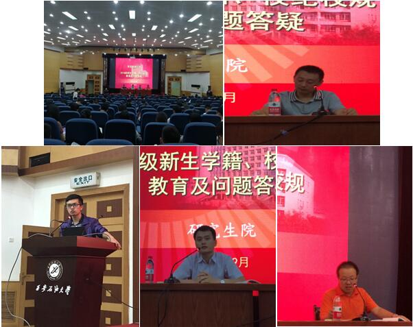 為進(jìn)一步落實(shí)2018級(jí)碩士研究生入學(xué)教育工作,提高研究生日常學(xué)習(xí)生活質(zhì)量,在學(xué)生工作部的指導(dǎo)下,9月12日至9月14日,在黨委學(xué)工部的指導(dǎo)下,研究生院聯(lián)合學(xué)生心理成長指導(dǎo)中心、保衛(wèi)處、計(jì)劃財(cái)務(wù)處、校醫(yī)院等,在雁塔校區(qū)會(huì)議中心學(xué)術(shù)報(bào)告廳先后開展了法制安全教育、消防安全教育、新生學(xué)籍校紀(jì)校規(guī)教育及問題答疑、衛(wèi)生防疫教育、心理健康教育等一系列入學(xué)教育專題報(bào)告。