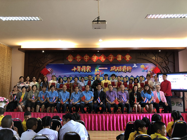 2018年9月10正值中國的教師節(jié),泰國國光中學孔子課堂舉辦了特殊的慶祝活動“國光中學首屆中文教師漢語教學技能大賽”,希望在這個特殊的日子里讓老師能夠以賽促教,以賽促學,能夠更好的發(fā)展對外漢語教學。我校漢語國際教育專業(yè)17級在讀碩士、漢語國際教師志愿者黨杏丹同學在此次活動中榮獲三等獎。