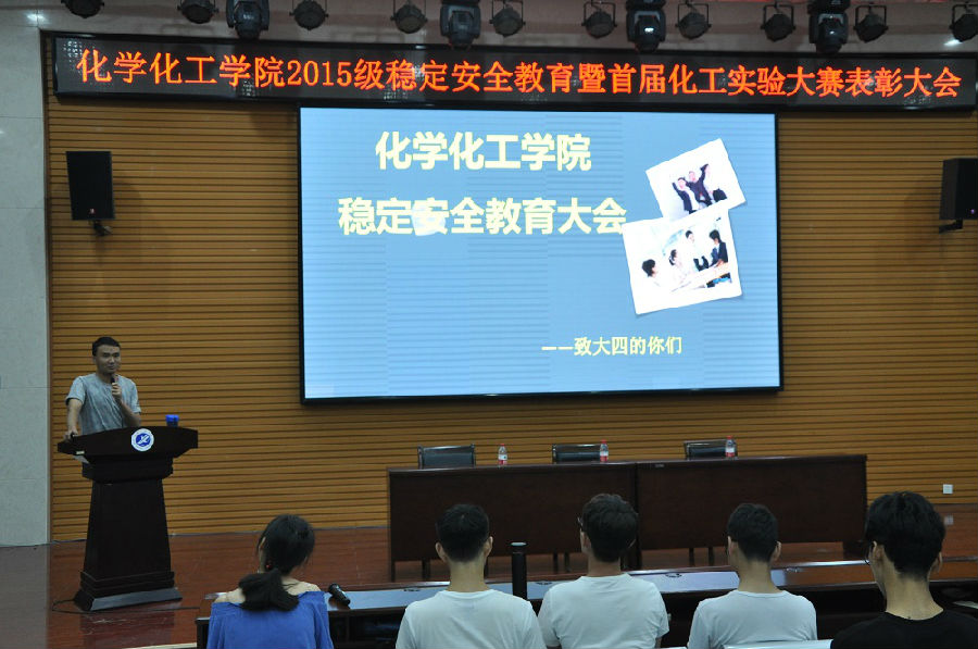 7月3日下午,化學化工學院在鄠邑校區(qū)就業(yè)指導中心多功能廳舉行2015級穩(wěn)定安全教育暨首屆化工實驗大賽表彰大會。學院學管辦主任董丙劍,輔導員陳景輝、張少良出席了大會。學院2015級全體學生參加了大會。