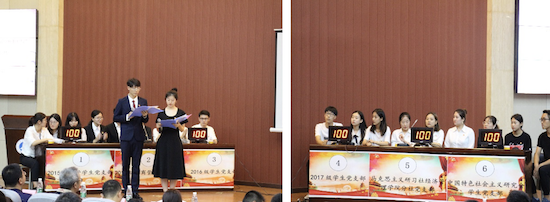 本次比賽由2016級學生干部李鑫浩、陳悅同志主持,共分為必答題、搶答題和風險題三個環(huán)節(jié)。比賽中,六組由各黨支部選拔出的優(yōu)秀選手在答題環(huán)節(jié)展現(xiàn)出非凡的實力,尤其在搶答環(huán)節(jié),更是賽出了大學生黨員應有的風采。最終2015級商管學生黨支部獲得本次比賽一等獎,并由閆大維書記為他們頒獎。