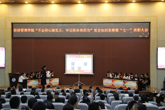 在“七一”黨的生日來臨之際,為進一步激發(fā)青年學生熱愛祖國、永遠跟黨走的民族情懷,培養(yǎng)學生社會主義核心價值觀,引導學生健康成長成才,讓學生學黨史、知黨章,做合格黨員,6月27日下午,由經(jīng)濟管理學院黨委主辦,學生黨建工作辦公室承辦的“不忘初心跟黨走,牢記使命勇?lián)敗秉h史知識競賽暨“七一”表彰大會在鄠邑校區(qū)弘石學術報告廳舉行。經(jīng)濟管理學院黨委書記閆大維,副書記趙海濤,副院長吳勛、張帆,教工黨支部書記董春詩、王小鵬出席,教工黨員代表、各年級輔導員以及學生黨員、入黨積極分子代表近400人參加。