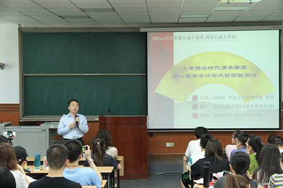 6月13日下午3點(diǎn),由中國(guó)會(huì)計(jì)學(xué)會(huì)和全國(guó)會(huì)計(jì)專(zhuān)業(yè)學(xué)位研究生教育指導(dǎo)委員會(huì)共同主辦、西安石油大學(xué)經(jīng)濟(jì)管理學(xué)院承辦的MPAcc會(huì)計(jì)名家公益大講堂,在雁塔校區(qū)東階202教室隆重開(kāi)講。西安交通大學(xué)管理學(xué)院田高良教授蒞臨現(xiàn)場(chǎng),為200多位師生帶來(lái)“大智移云時(shí)代清單管理融入管理會(huì)計(jì)與內(nèi)部控制探討”的主題講座。