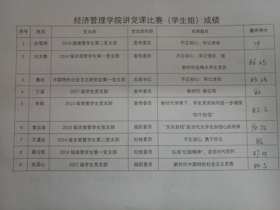 經(jīng)濟(jì)管理學(xué)院舉辦“不忘初心跟黨走,牢記使命勇?lián)?dāng)”講黨課比賽