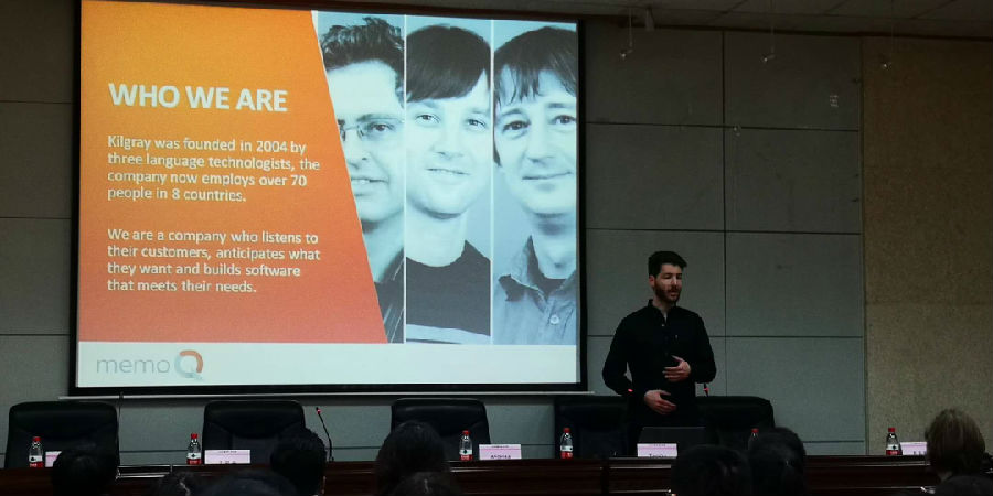 外國(guó)語(yǔ)學(xué)院院長(zhǎng)于艷英致開(kāi)幕詞,對(duì)各位嘉賓的到來(lái)表示熱烈的歡迎。Kilgray公司聯(lián)合創(chuàng)始人,memoQ創(chuàng)意總監(jiān)Gabor Ugray和渠道總監(jiān)Tomas Ritter分別對(duì)memoQ的開(kāi)發(fā)理念和服務(wù)器技術(shù)進(jìn)行了介紹,享譽(yù)全球的翻譯軟件培訓(xùn)師Angelika Zerfass就翻譯項(xiàng)目創(chuàng)建、術(shù)語(yǔ)管理和質(zhì)量控制等作了十分詳實(shí)的報(bào)告。上海一者信息科技劉寧赫經(jīng)理對(duì)基于memoQ, Trados 的Tmxmall語(yǔ)料對(duì)齊技術(shù)、在線翻譯、語(yǔ)料庫(kù)管理等進(jìn)行了圖文并茂的釋解,并耐心地對(duì)與會(huì)者提出的問(wèn)題進(jìn)行了深入淺出的解答。