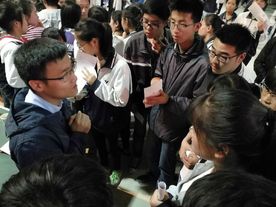齊基和張振軍兩位老師結(jié)合生涯規(guī)劃課程知識體系與自身豐富的學(xué)生工作經(jīng)驗,精心準(zhǔn)備,為高中生做了多場精彩紛呈的中學(xué)生生涯規(guī)劃與心理勵志報告,活動現(xiàn)場互動熱烈,報告會受到了中學(xué)生的熱烈追捧。同學(xué)們紛紛表示受益匪淺,對個人未來的生涯規(guī)劃和職業(yè)導(dǎo)向有了更清晰的認(rèn)識和目標(biāo)。在走訪中學(xué)的咨詢服務(wù)活動中,兩位老師為各地中學(xué)分發(fā)我校2018年招生宣傳材料,為同學(xué)們答疑解惑,解讀招生政策、專業(yè)特色、就業(yè)前景等關(guān)注度較高的問題,我校富有特色、內(nèi)容豐富的宣傳材料受到了中學(xué)師生的廣泛好評。