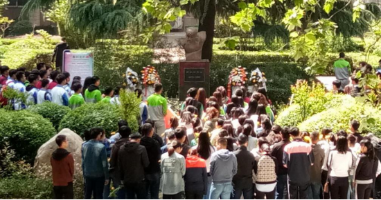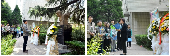 在“悼英雄,緬懷光輝事跡”環(huán)節(jié),在石油工程學院溫迪同學主持下,與會師生集體默哀,本科生代表葉楠帶領大家回顧了英雄事跡;石油工程學院、研究生院黨委書記馬勇、高榮芳,石油工程學院院長周德勝、黨委副書記張建高、唐春雨烈士生前班主任老師李琪、學生管理辦公室主任孫會珠,研究生輔導員周鈺桐,本科生輔導員朱戰(zhàn)威、張楠、劉曉陽、嚴維博、孫浩哲等,同本科生、研究生黨員代表,研究生會代表一起,依次在春雨烈士塑像前行三鞠躬禮并獻花,表達對烈士的無限哀思和敬意。時在鄠邑校區(qū)上課的石油工程教師、唐春雨烈士生前同學徐波,也轉(zhuǎn)達了班級同學對烈士的無限緬懷。