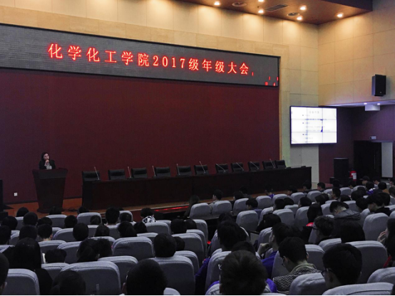 2018年4月9日晚19點,化學化工學院在鄠邑校區(qū)弘石報告廳召開2017級年級大會。大會由2017級輔導員楊夢琳主持,學院2017級全體學生參加了此次大會。