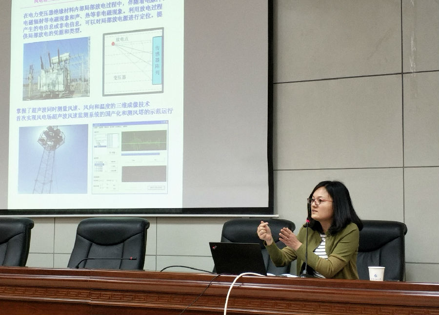 張超助理研究員首先介紹了中科院電工所工程電磁場(chǎng)及應(yīng)用技術(shù)研究部的概況,然后結(jié)合研究部所承擔(dān)的國家科技支撐項(xiàng)目、國家自然科學(xué)基金、國家電網(wǎng)公司合作項(xiàng)目,對(duì)研究部形成的幾大關(guān)鍵技術(shù)逐一進(jìn)行了專業(yè)講解,其中包括金屬磁記憶無損檢測(cè)技術(shù)、超聲波與電磁在線檢測(cè)技術(shù)、有源降噪技術(shù)、人體壓力分布成像技術(shù)、磁感應(yīng)成像和感應(yīng)式磁共振成像技術(shù)、地面金屬礦電磁探測(cè)技術(shù)、磁熱聲成像技術(shù)、陣列磁聲電阻率測(cè)井技術(shù)、基于磁聲電耦合的過套管電阻率測(cè)井技術(shù)、超級(jí)計(jì)算中心、磁諧振式無線電能傳輸技術(shù)等。