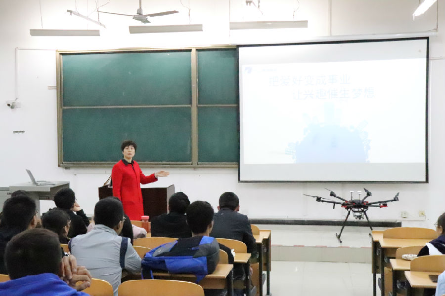 首先,李靜老師為同學(xué)們講述了無人機的發(fā)展現(xiàn)狀和前景,以及它在軍事、農(nóng)業(yè)、城市管理等方面的應(yīng)用;接著,李老師又為同學(xué)們講到了近期大疆五百架無人機的大型表演,場面氣勢磅礴,給同學(xué)們帶來了極大的震撼,那么復(fù)雜、繁瑣的程序操作竟然僅僅只由一個人來完成,讓同學(xué)們對無人機產(chǎn)生了濃厚的興趣;最后,李老師通過幾個視頻使同學(xué)們更加深刻地了解到無人機的功能強大,其中涉及到燈展、航拍、調(diào)查執(zhí)法、農(nóng)業(yè)生產(chǎn)等領(lǐng)域。