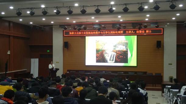 1月3日晚7:00,在鄠邑校區(qū)人文經(jīng)管樓118報告廳,化學(xué)化工學(xué)院邀請客座教授趙黎安博士做了題為“加拿大石油工業(yè)發(fā)展趨勢簡介與大學(xué)生國際化視野”的報告?;瘜W(xué)化工學(xué)院黨委副書記劉小波主持報告會,化學(xué)化工學(xué)院院長王文珍及師生共計三百余人聆聽了報告。