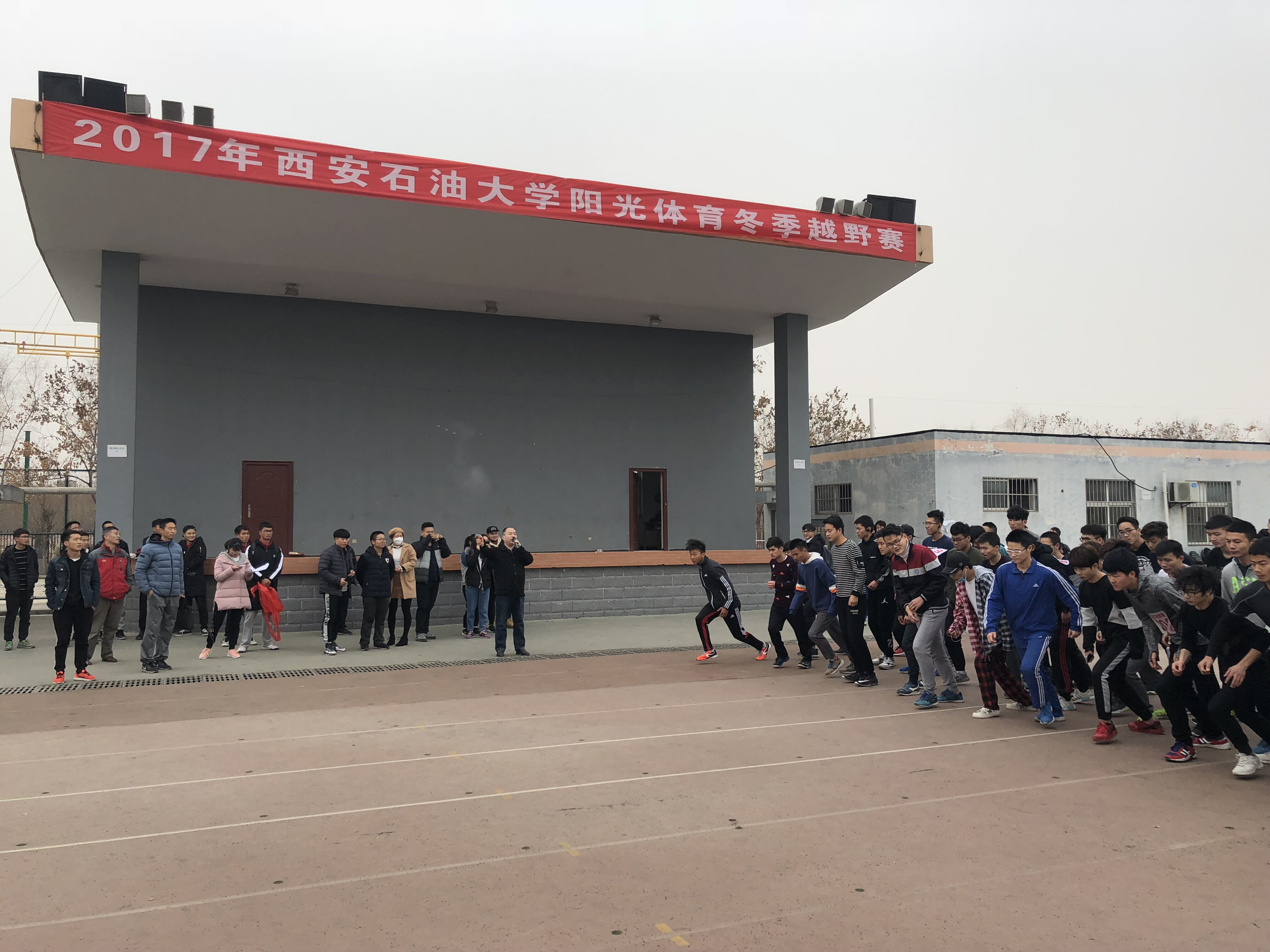 為積極響應(yīng)共青團(tuán)中央、國家教育部、國家體育總局、全國學(xué)聯(lián)關(guān)于開展“走下網(wǎng)絡(luò)、走出宿舍、走向操場”主題活動(dòng)的號(hào)召,大力推動(dòng)學(xué)?!瓣柟怏w育·冬季長跑”健身活動(dòng),提升學(xué)生身體素質(zhì),豐富校園體育文化生活,2017年12月29日下午,西安石油大學(xué)“陽光體育”大學(xué)生冬季越野賽在我校鄠邑校區(qū)成功舉行,校體育運(yùn)動(dòng)委員會(huì)主任、副校長陳軍斌為比賽鳴槍開賽。