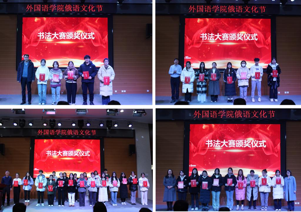 為進(jìn)一步展示外語及其蘊(yùn)含的深邃文化,引導(dǎo)學(xué)生體會外語的形美和意美,激發(fā)學(xué)習(xí)興趣,營造良好氛圍。為期一個(gè)月的俄語文化節(jié)設(shè)置了外語書法大賽、海報(bào)設(shè)計(jì)大賽等,并進(jìn)行了隆重表彰,與會領(lǐng)導(dǎo)嘉賓為獲獎學(xué)生頒獎。