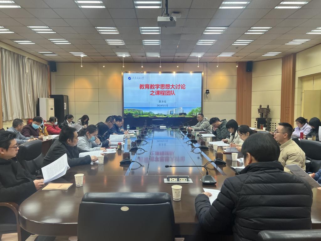 為持續(xù)深入開展學習貫徹習近平新時代中國特色社會主義思想,全面學習貫徹黨的二十大精神,進一步落實中國共產(chǎn)黨西安石油大學第三次代表大會要求,統(tǒng)一思想、凝聚共識,深化本科教育教學改革,根據(jù)《西安石油大學關于開展本科教育教學思想大討論活動的通知》工作安排,1月8日下午,教務處開展了以“推動課程教學由‘以教為中心’向‘以學為中心’的轉變,不斷提升教學能力水平,增強教學質量意識”為主題的課程團隊教育教學思想大討論研討會。各院(系)教師代表及教務處相關負責人參加會議。會議由教務處副處長吳勛主持。