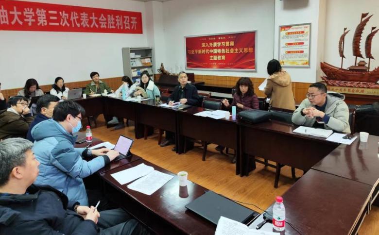 為持續(xù)深入學(xué)習(xí)貫徹習(xí)近平新時(shí)代中國特色社會(huì)主義思想和黨的二十大精神,進(jìn)一步落實(shí)中國共產(chǎn)黨西安石油大學(xué)第三次代表大會(huì)要求,深化本科教育教學(xué)改革,推動(dòng)學(xué)校本科教育高質(zhì)量發(fā)展,全力做好本科教育教學(xué)審核評(píng)估評(píng)建工作,根據(jù)學(xué)校《關(guān)于在全校開展本科教育教學(xué)思想大討論活動(dòng)的通知》要求,經(jīng)濟(jì)管理學(xué)院于1月12日上午召開本科教育教學(xué)思想大討論會(huì)議。會(huì)議邀請(qǐng)西安科技大學(xué)管理學(xué)院副院長史玉芳教授線上分享了審核評(píng)估迎評(píng)促建工作經(jīng)驗(yàn)以及學(xué)術(shù)型人才培養(yǎng)舉措。學(xué)院黨委書記王宏衛(wèi),院長王君萍,以及各系主任、專業(yè)負(fù)責(zé)人、辦公室主任參加會(huì)議。會(huì)議由副院長吳勛主持。