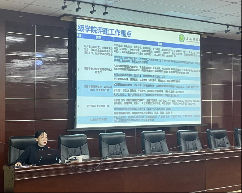 為進一步推進學院本科教育教學審核評估工作, 1月18日上午,學院特邀西安科技大學教學質(zhì)量監(jiān)督評估中心副主任趙蕾,為全院教師做本科教育教學審核評估工作專題報告。