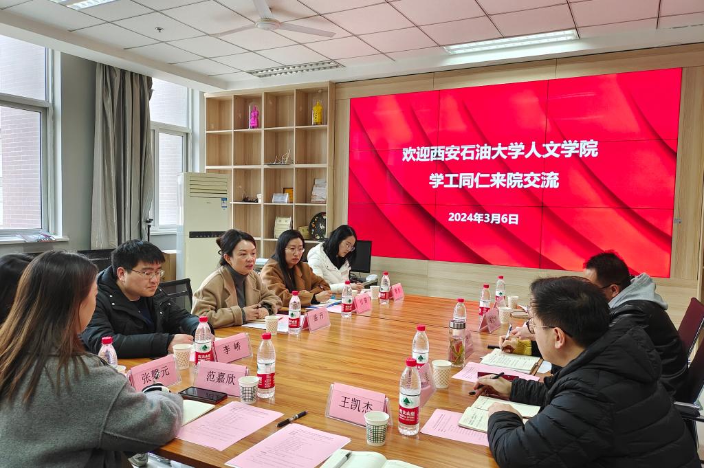 為落實西安石油大學第三次黨代會精神,進一步提高學工干部工作能力和管理水平,更高質(zhì)量開展學生教育管理,多措并舉提升思想政治工作實效。3月6日,根據(jù)《西安石油大學人文學院學工干部訪學提質(zhì)計劃》安排,人文學院黨委副書記盛丹帶領(lǐng)學院全體學工干部赴西北政法大學新聞傳播學院、西安郵電大學數(shù)字藝術(shù)學院調(diào)研學習。