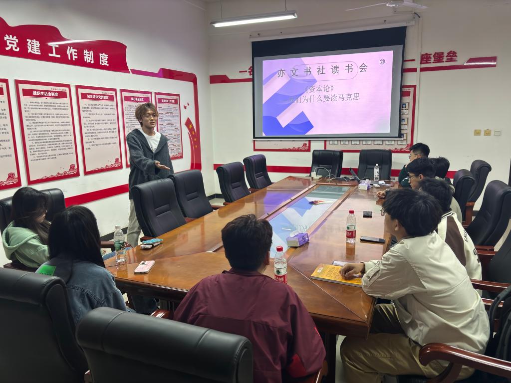 活動(dòng)現(xiàn)場氣氛熱烈,圖書分享者孔壹萱深入淺出的對《資本論》進(jìn)行了解讀,不僅剖析了《資本論》的核心理論,更結(jié)合了當(dāng)下的社會現(xiàn)實(shí),讓同學(xué)們能夠更直觀地理解馬克思主義在當(dāng)代社會的價(jià)值和意義??滓驾鎻鸟R克思主義的歷史背景出發(fā),講述了其產(chǎn)生的社會根源和思想基礎(chǔ),進(jìn)而深入探討了《資本論》中關(guān)于商品、貨幣、剩余價(jià)值等核心概念的分析。他通過生動(dòng)的案例和生動(dòng)的語言,將這些抽象的理論具象化,讓同學(xué)們能夠更好地領(lǐng)悟其中的精髓。在互動(dòng)環(huán)節(jié),同學(xué)們積極提問,孔壹萱耐心解答,雙方就馬克思主義在當(dāng)代社會的應(yīng)用和發(fā)展進(jìn)行了深入的探討。