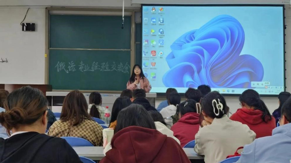 為落實(shí)學(xué)院關(guān)于推進(jìn)畢業(yè)生就業(yè)工作的安排,加強(qiáng)俄語(yǔ)專業(yè)學(xué)生對(duì)升學(xué)和就業(yè)形式的了解,幫助學(xué)生做好學(xué)業(yè)及職業(yè)規(guī)劃。4月2日,俄語(yǔ)專業(yè)在鄠邑校區(qū)A302教室舉辦就業(yè)考研經(jīng)驗(yàn)分享交流會(huì),俄語(yǔ)專業(yè)優(yōu)秀在校生楊奕聰、孫芳茹、張靜葉、薛思琪以及優(yōu)秀畢業(yè)生郭麗瑋應(yīng)邀分享經(jīng)驗(yàn)。會(huì)議由俄語(yǔ)系系主任張艷主持。俄語(yǔ)專業(yè)教師李娜、賈永寧、孫婷、郭靜遠(yuǎn)及近200名本科生參加會(huì)議。