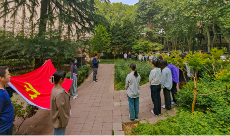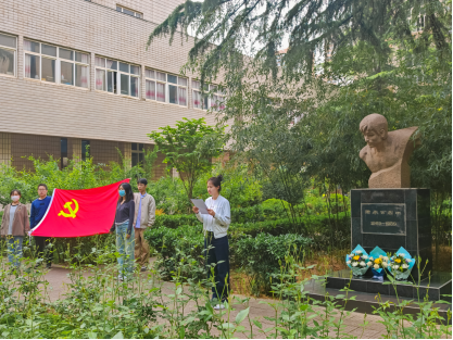 學(xué)生黨員代表周星號(hào)帶領(lǐng)全體師生高舉右拳,在烈士雕像前莊嚴(yán)地進(jìn)行“春雨精神”宣誓活動(dòng)。最后,全體師生代表默哀一分鐘,并向春雨烈士行三鞠躬禮。