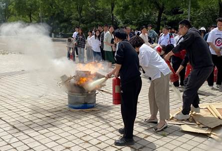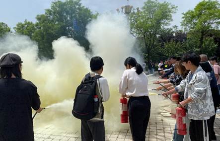隨后,保衛(wèi)處副處長袁坤向全體參訓(xùn)人員詳細(xì)講解滅火器材種類、使用方法等消防安全知識,并進(jìn)行現(xiàn)場滅火示范操作。參訓(xùn)師生根據(jù)動作要領(lǐng)完成滅火器滅火實(shí)操演練。