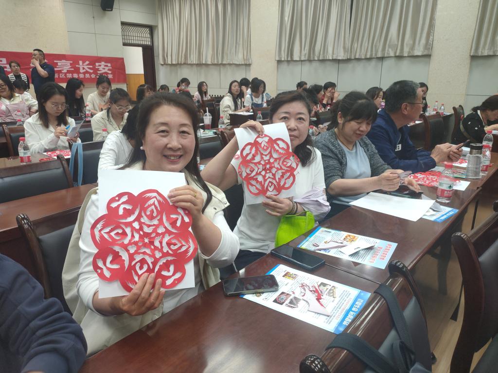 活動第三個環(huán)節(jié),由陜西省社區(qū)文化建設(shè)促進會非遺文化專業(yè)委員會主任王艷同志,主講非遺剪紙藝術(shù)的歷史與傳承,并帶領(lǐng)大家親身體驗剪紙的樂趣。