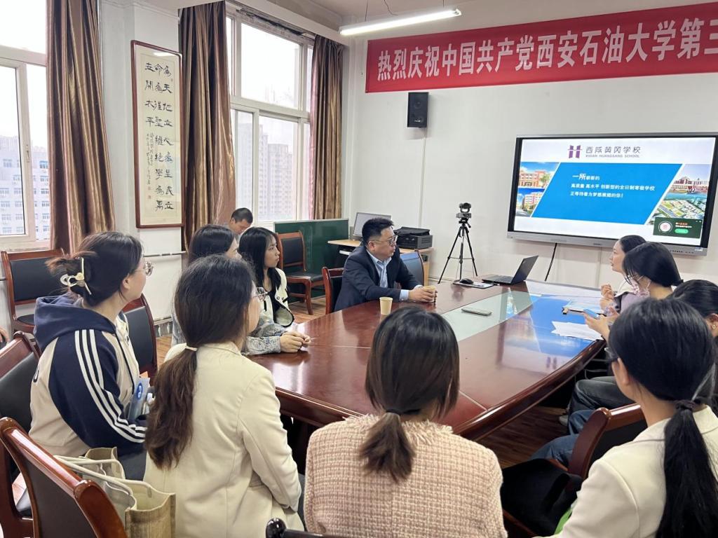 招聘會前,人文學(xué)院全體班子成員與黃岡涇河中學(xué)領(lǐng)導(dǎo)和老師,在雁塔校區(qū)華油能源樓人文學(xué)院會議室813進行了友好座談。