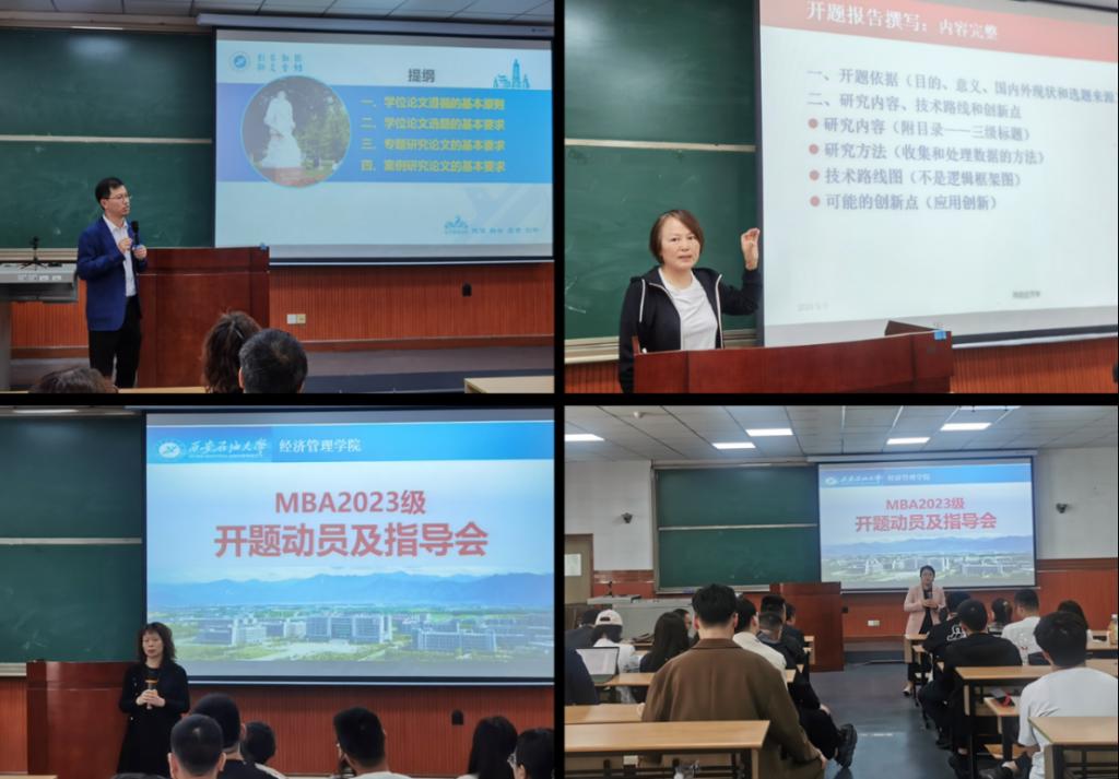 為提升工商管理碩士(MBA)學(xué)位論文質(zhì)量,幫助2023級(jí)MBA同學(xué)解決論文開(kāi)題過(guò)程中的疑難問(wèn)題,我校MBA教育中心于5月1日上午在雁塔校區(qū)東階202教室舉行了學(xué)位論文開(kāi)題動(dòng)員和指導(dǎo)活動(dòng)。經(jīng)濟(jì)管理學(xué)院院長(zhǎng)王君萍教授、副院長(zhǎng)李春霄副教授、MBA導(dǎo)師吳文潔教授、MBA教育中心負(fù)責(zé)人黃莉副教授對(duì)2023級(jí)MBA同學(xué)進(jìn)行了現(xiàn)場(chǎng)指導(dǎo)。