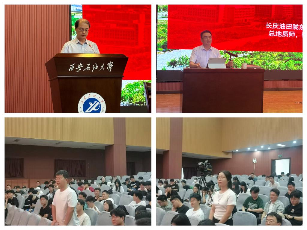 雷啟鴻校友本科學(xué)業(yè)和碩士研究生學(xué)業(yè)均在我校完成,是長慶油田隴東油氣開發(fā)分公司常務(wù)副經(jīng)理、總地質(zhì)師、教授級高工、甘肅省領(lǐng)軍人才。報告會上,雷啟鴻校友從世界石油工業(yè)的發(fā)展談起,他說到,自工業(yè)革命以來,石油的用途從照明逐漸演變?yōu)槿剂希F(xiàn)如今已廣泛應(yīng)用于各個領(lǐng)域,作為現(xiàn)代工業(yè)的血液,石油具有舉足輕重的戰(zhàn)略地位。在全球化日益加深的今天,各國石油產(chǎn)量需求更加旺盛,面對新形勢新挑戰(zhàn),加快構(gòu)建現(xiàn)代能源體系,必須堅持以習(xí)近平新時代中國特色社會主義思想為指導(dǎo),深入貫徹落實“四個革命、一個合作”能源安全新戰(zhàn)略,將油氣行業(yè)和新能源行業(yè)發(fā)展結(jié)合,提升國際競爭力,推動能源生產(chǎn)和消費結(jié)構(gòu)不斷優(yōu)化。隨后,雷啟鴻校友結(jié)合自己從業(yè)24年的工作經(jīng)歷,向研究生們提出幾點希望:一是胸懷理想,努力作為;二是德才兼?zhèn)?,努力修為;三是保持學(xué)習(xí),勤于思考;四是守正創(chuàng)新,注重合作。最后,他用習(xí)近平總書記在黨的二十大報告中的講話寄語廣大研究生“當(dāng)代中國青年生逢其時,施展才干的舞臺無比廣闊,實現(xiàn)夢想的前景無比光明?!彼M芯可鷤兡軐€人追求同國家需要和人民利益保持一致,成就更有意義的精彩人生。