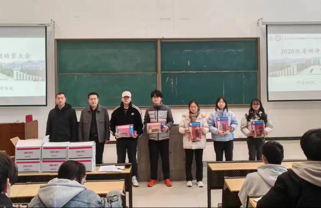 關(guān)注考生需求,落實(shí)服務(wù)保障。學(xué)院積極補(bǔ)充考研自習(xí)室,為考研學(xué)生提供舒適、溫馨的學(xué)習(xí)環(huán)境。學(xué)院黨政領(lǐng)導(dǎo)在暑假期間多次前往鄠邑校區(qū),看望慰問(wèn)留??佳袑W(xué)生??佳星跋Γ瑢W(xué)院向考研學(xué)子們送出了印有學(xué)院院徽及“夢(mèng)想成真”等美好祝愿的“考研加油大禮包”,禮包有考試套裝以及訂制書(shū)簽、牛奶等,鼓勵(lì)同學(xué)們?cè)诳佳新飞吓G斬棘,夢(mèng)想成真。