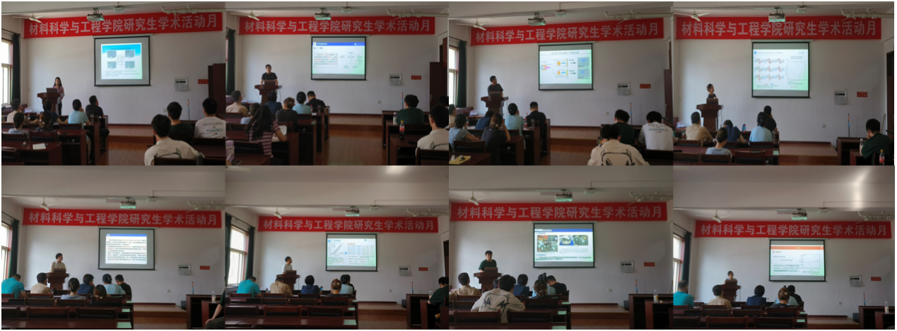 2021級研究生薛力源、王苗、李志如、鄭書權、楊培智,2022級研究生肖世俊、張國棟、張樂樂,分別作了題為《N2分壓對ZrN涂層取向和摩擦腐蝕行為及機理的影響》《S-O間非共價相互作用對非稠環(huán)受體分子光電性質的影響研究》《光誘導氧空位Bi2O2(OH)NO3的制備及其光催化性能研究》《丙烯酰甘氨酸離子凝膠的制備及在人體運動監(jiān)測中的應用》《TC4鈦合金混合制造結合區(qū)組織形成機制與性能調控》《強制冷卻下大直徑薄管板殘余應力及變形分析》《大氣等離子噴涂NiCrB沉積行為研究》《TiAl合金亞穩(wěn)組織析出調控及高溫氧化行為研究》的報告。