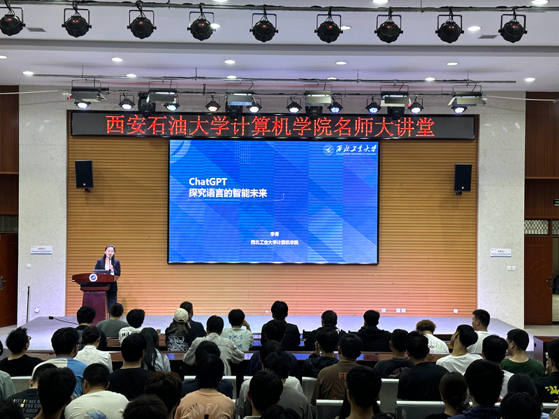 5月29日16:00,在鄠邑校區(qū)就業(yè)指導中心多功能報告廳,計算機學院邀請西北工業(yè)大學計算機學院李青副教授作題為《ChatGPT探究語言的智能未來》的學術報告。報告會由學院黨委副書記龐遠主持,200多名學生現(xiàn)場聆聽了報告。