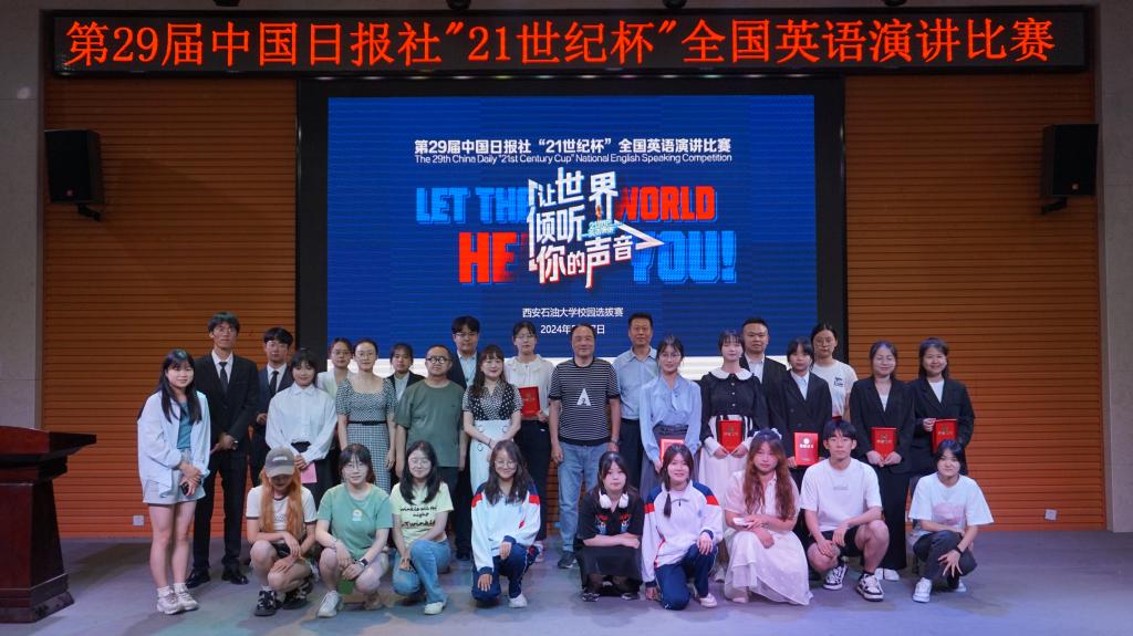5月27日,外國(guó)語(yǔ)學(xué)院在鄠邑校區(qū)崇文樓舉辦了第29屆“21世紀(jì)杯”全國(guó)英語(yǔ)演講比賽暨西安石油大學(xué)校賽決賽。外國(guó)語(yǔ)學(xué)院副院長(zhǎng)陳武、英語(yǔ)系主任鐘澤波、大學(xué)外語(yǔ)第二教學(xué)部主任彭健,大學(xué)外語(yǔ)第二教學(xué)部教師畢瑩,以及輔導(dǎo)員陶李擔(dān)任評(píng)委,12名參賽選手以及工作人員參加此次演講大賽。