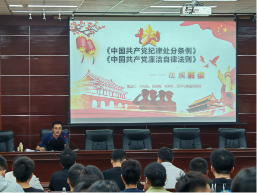 最后他對全體學生黨員提出希望和要求,一是要不斷提高自己對黨紀的理解和認識,將黨紀學習融入日常學習生活中;二是要在校學生黨員嚴格遵守黨的紀律,以嚴謹態(tài)度對待學業(yè),認真負責,遵守學術(shù)規(guī)范,并積極參與校園活動,在學風建設(shè)、作風建設(shè)和宿舍文化建設(shè)中發(fā)揮模范帶頭作用;三畢業(yè)生黨員步入工作崗位后,在工作上時刻起帶頭作用,履職盡責,干好本職工作,立足崗位做貢獻。