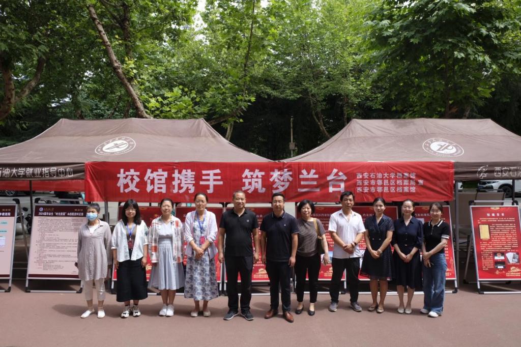 會(huì)后,鄠邑區(qū)檔案館館長(zhǎng)葛紅衛(wèi)一行參觀了校史館。參觀結(jié)束后,雙方聯(lián)合開(kāi)展了“校館攜手,筑夢(mèng)蘭臺(tái)‘6·9’國(guó)際檔案日主題宣傳”活動(dòng),重點(diǎn)對(duì)《檔案法實(shí)施條例》、畢業(yè)生檔案辦理流程和檔案征集活動(dòng)進(jìn)行了宣傳。活動(dòng)在鄠邑校區(qū)B區(qū)食堂門前舉行。